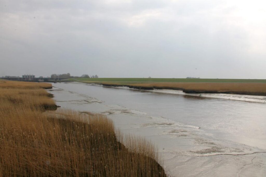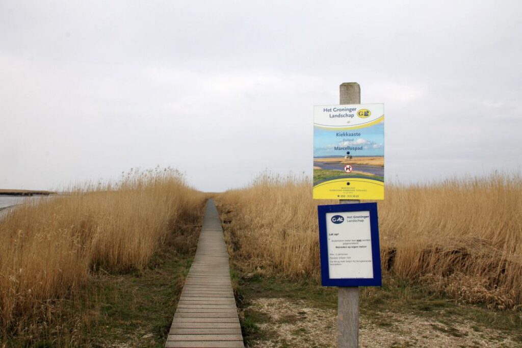 Na veel bos is het toch eens tijd om naar het wad te gaan. Na een rit door de uitgestrekte weilanden en polders komen we aan bij het sluizencomplex in Nieuw-Statenzijl. Ze zijn net bezig met ecologische onderzoeken en er worden emmers met water naar boven gehezen. Om ze niet te storen lopen we snel verder naar het begin van het Marcelluspad. In 2018 is er een nieuw pad aangelegd om de Kiekkaaste (Gronings voor kijkkast) goed te kunnen bereiken. In 1995 is de enige buitendijkse vogelkijkhut geplaatst. Voorheen was de hut een groot deel van het jaar niet bereikbaar omdat je door het wad moest glibberen. Tegenwoordig volg je een smal vlonderpad, van ongeveer 1,5 km, door het hoge riet.